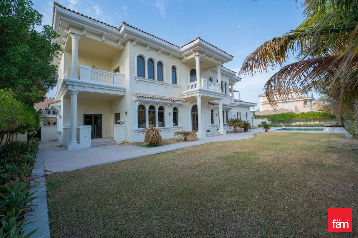 Signature Villa for Rent - Palm Jumeirah fäm Properties is pleased to introduce this beautiful 6 Bedrooms Beachfront Signature Villa located on the Palm Jumeirah private fronds. Property Features: - 6 Bedrooms Villa - 7 Bathrooms - BUA Area : 7,000 sq ft - Land Size: 13,365 sq ft - Unfurnished - Available now - Sunrise view - Private Beach Access - Private Pool - Landscaped Front & Back Gardens - Large Garage and Driveway At fäm Properties we understand the discerning tastes and unique requirements of our clients. Our team experienced professionals are dedicated to curating a portfolio of Luxury Properties that meet the highest of standards of quality, design and location. Whether it's a luxurious penthouse, or expansive mansion, we strive to match our clients with their dream property and in their desired location. Contact us now for Private Viewing.