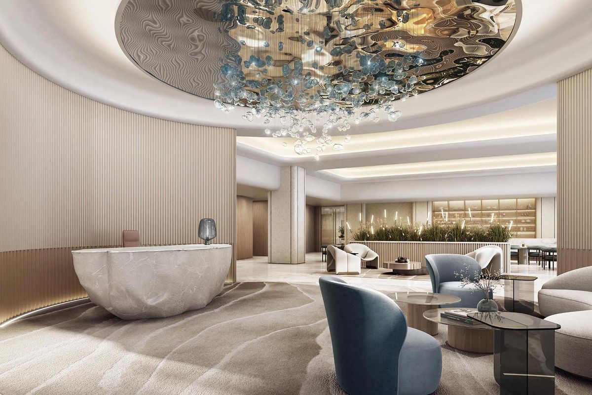 A host of amenities await residents, including a modern gymnasium, an outdoor yoga area, private beach access, a beach club, a sky lounge, multiple swimming pools and more.