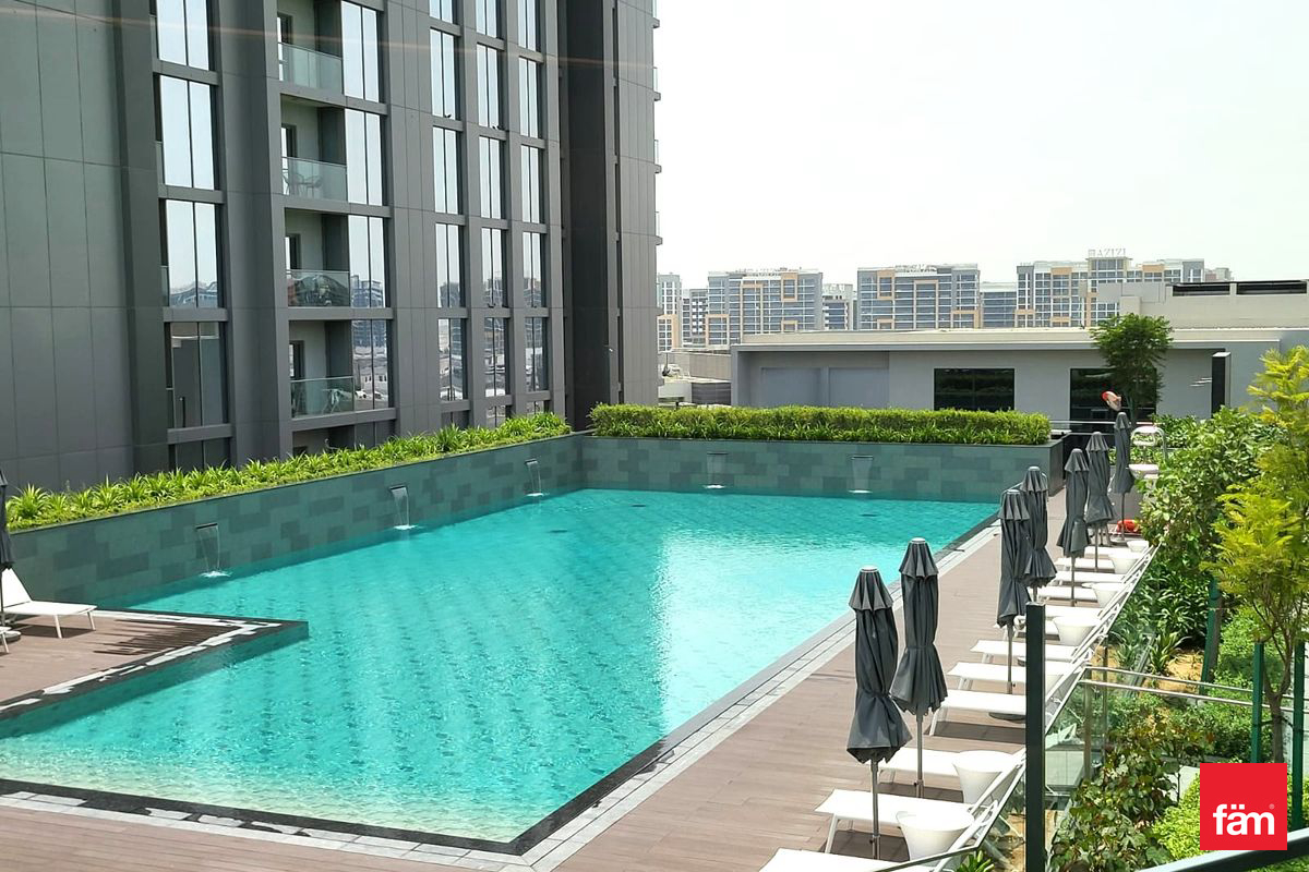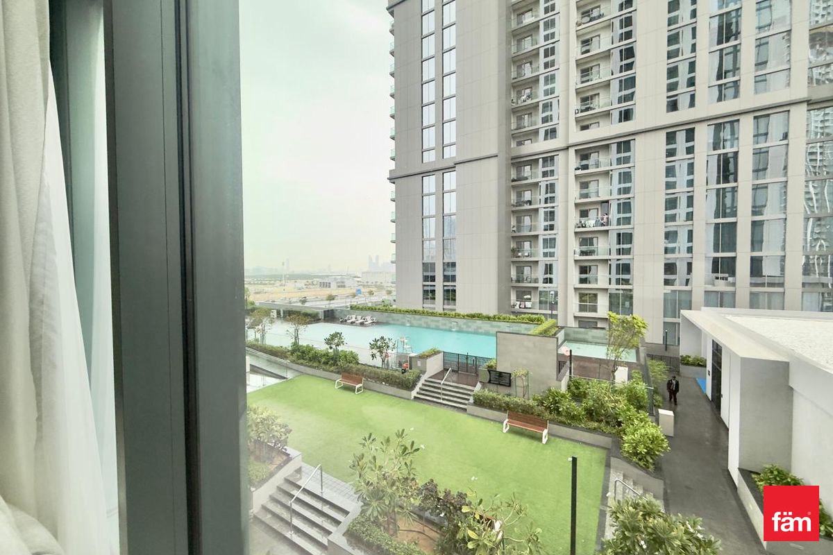 fäm Properties presents this stunning two-bedroom apartment in Sobha Creek Vistas Grande, located in the prestigious Sobha Hartland. Set on a mid-floor, this modern apartment features a bright open-plan layout with floor-to-ceiling windows, offering serene views of the glistening blue pool. Designed for comfortable urban living, the unit combines premium finishes with functional space. Property Features: 2 En-suite bedrooms 3 bathrooms (incl. guest powder room) 1,106.00 sqft Open-plan living & dining area Fully fitted kitchen with appliances Two private balconies with open views Built-in wardrobes Laundry area 1 covered parking Amenities: Infinity pool & sun deck Fully equipped gym Landscaped gardens Jogging & cycling tracks Kids’ play area & BBQ zone 24/7 security & concierge Located minutes from Burj Khalifa and Downtown Dubai, this property offers the perfect balance of city convenience and peaceful community living. High demand location Contact Kostas to book your viewing today!