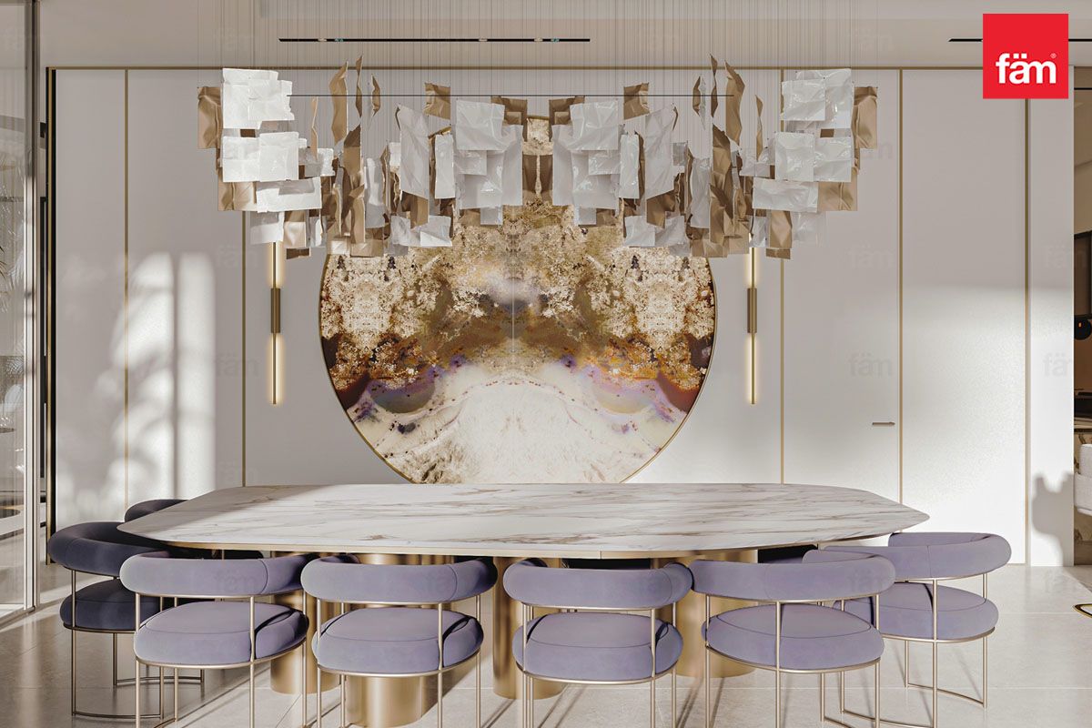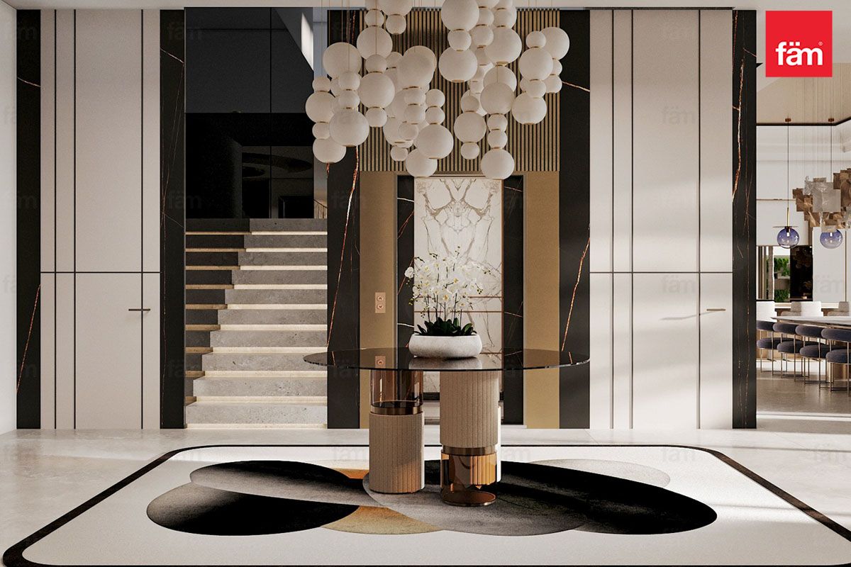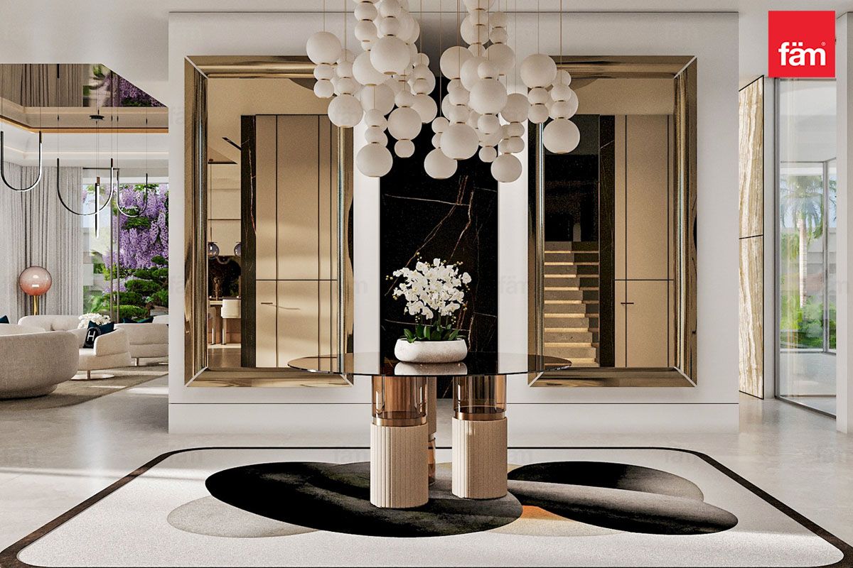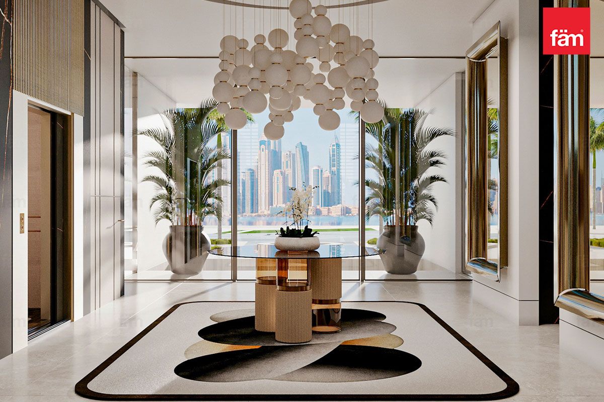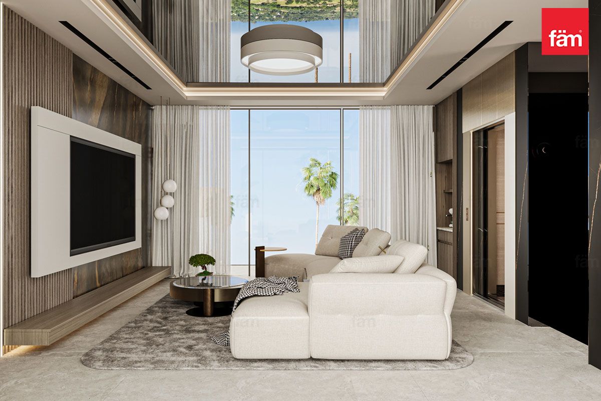 Inside, the open-plan layout connects living, dining, and entertainment areas, perfect for elegant gatherings. The interiors balance polished marble floors, statement chandeliers, plush lounges, and intricate detailing, blending contemporary style with heritage.