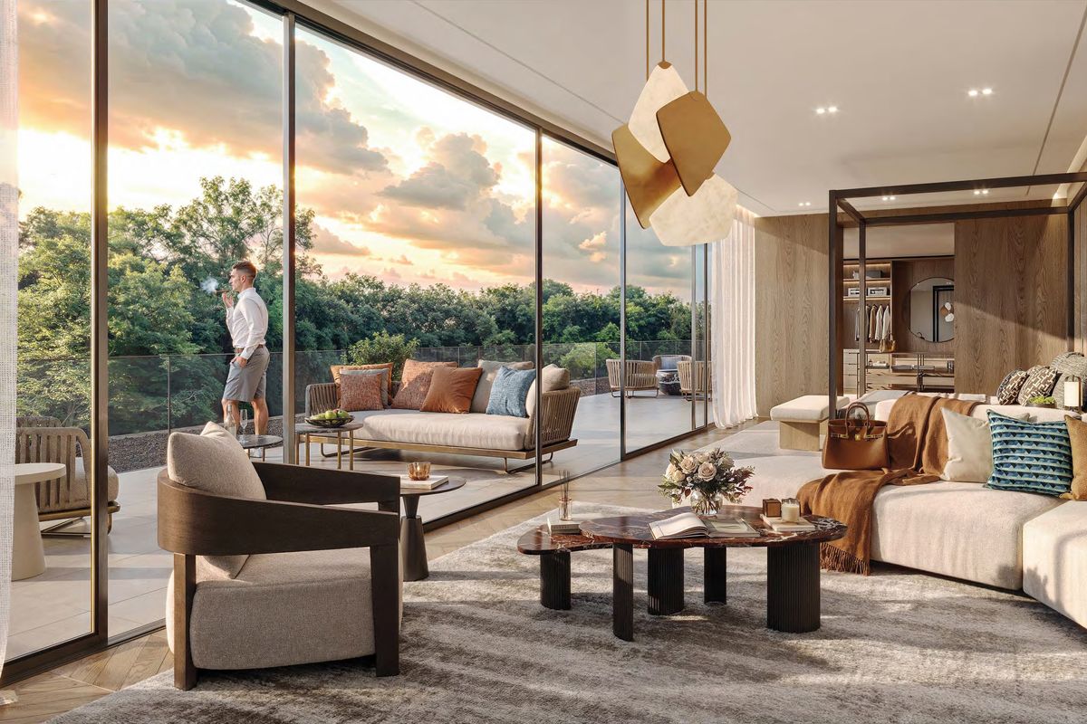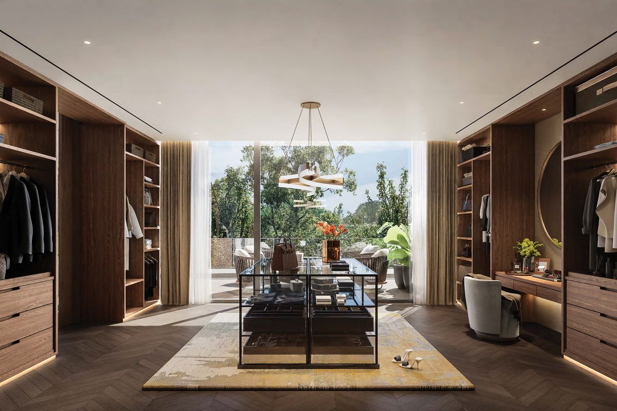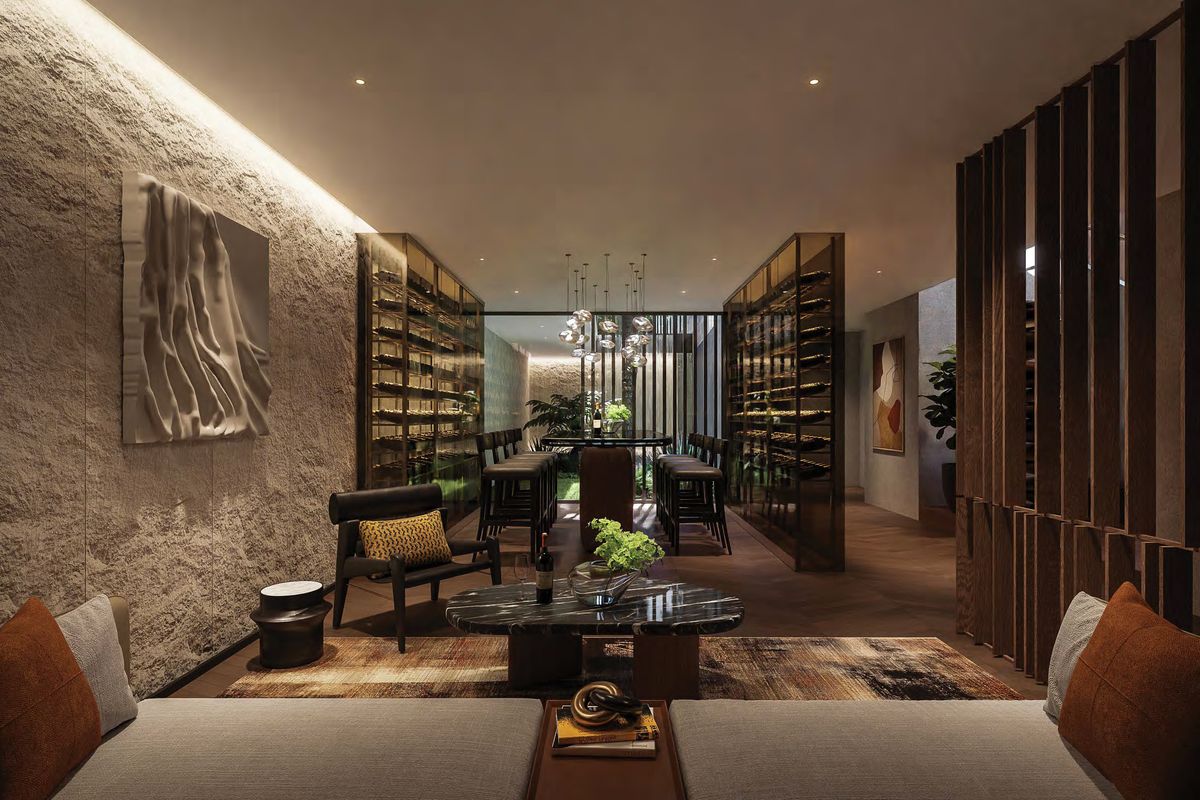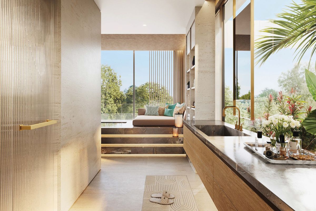 Interiors can be personalized with exclusive design themes by BLINK Design Studio, featuring timeless minimalist aesthetics and natural textures.