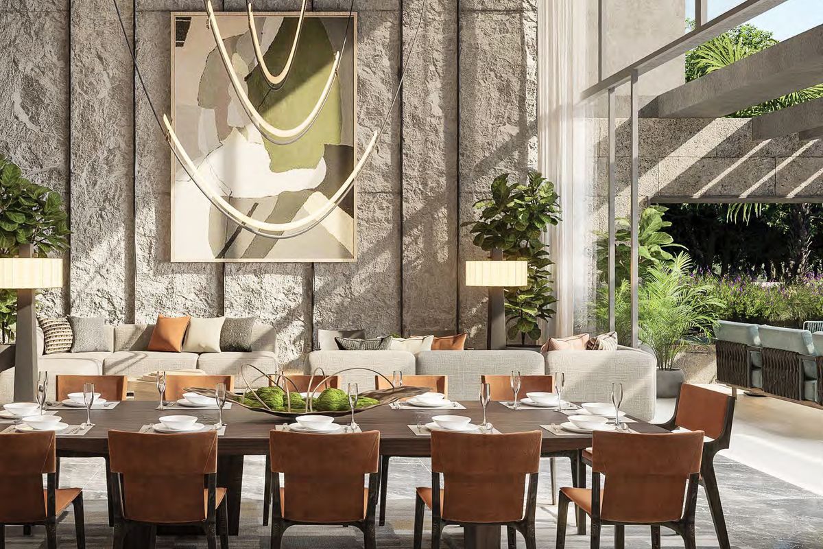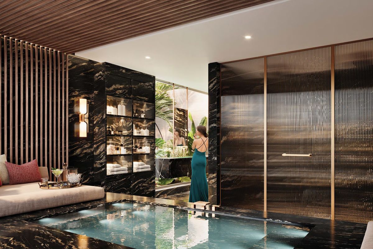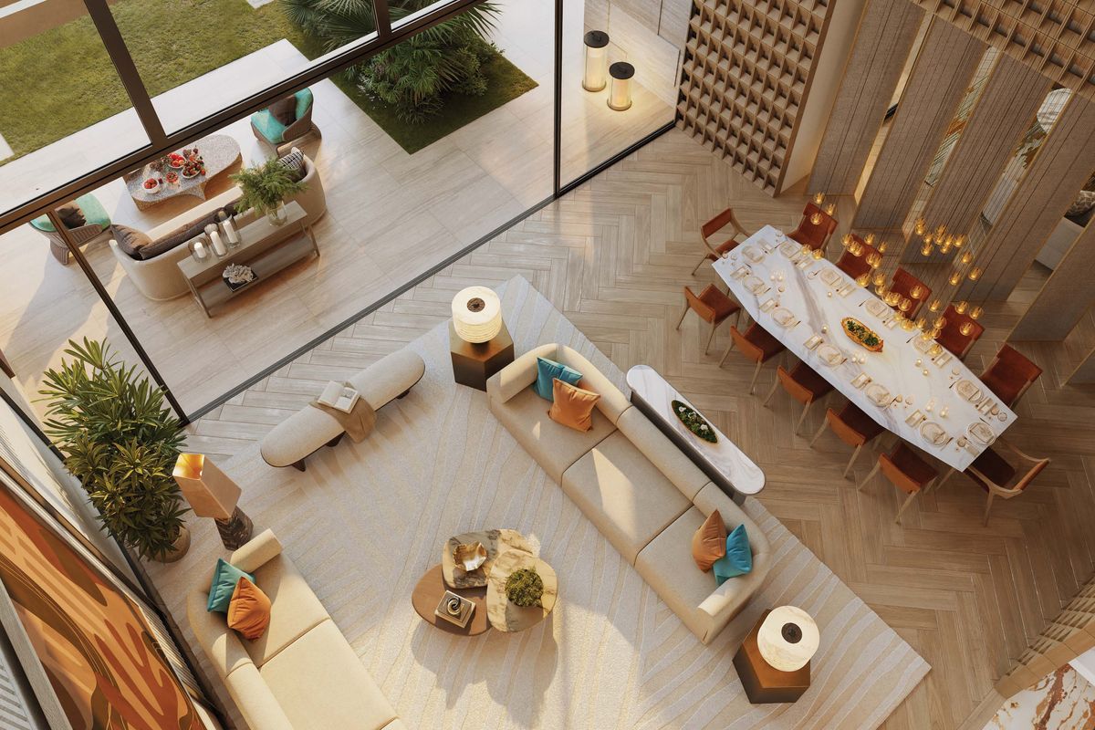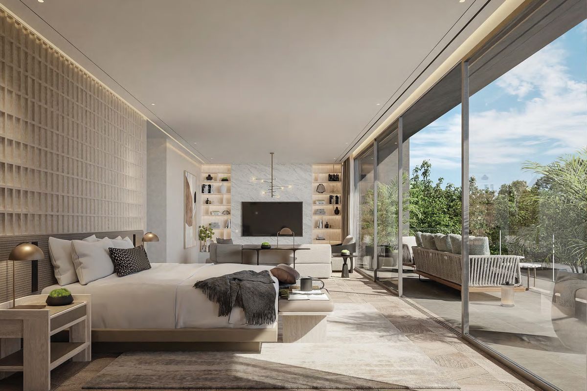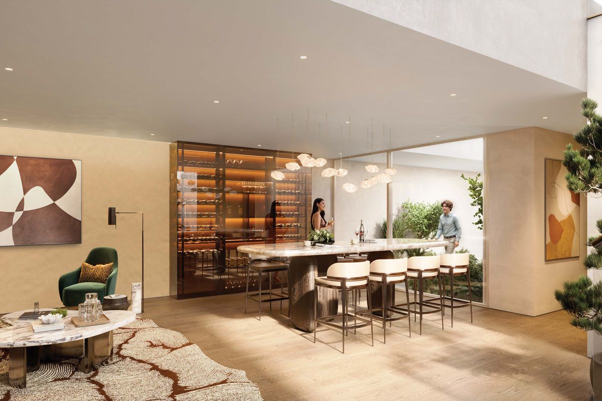 Interiors can be personalized with exclusive design themes by BLINK Design Studio, featuring timeless minimalist aesthetics and natural textures.