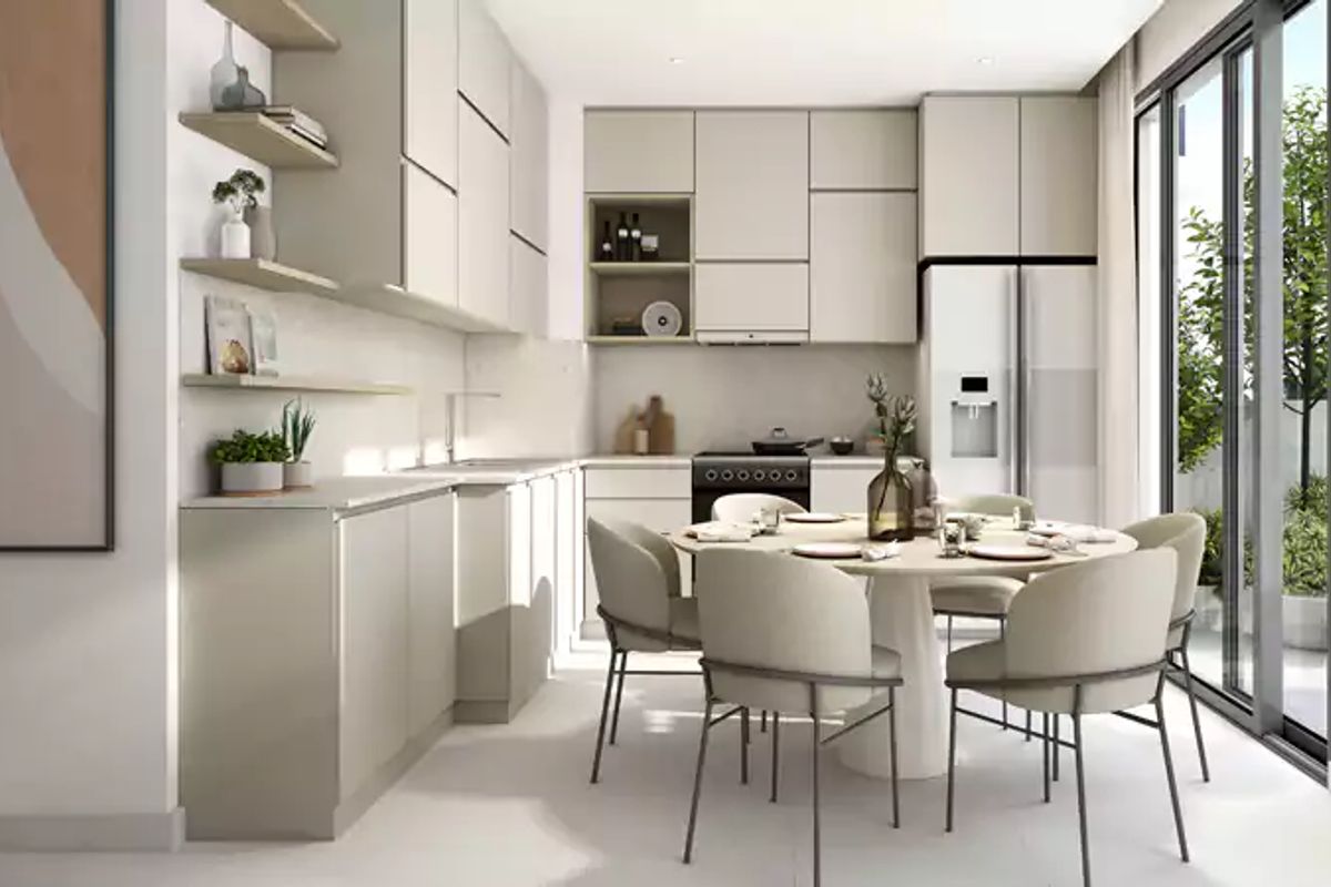 Inspired by Mediterranean-style architecture, the home offers bright open living spaces, high ceilings, and a seamless indoor–outdoor flow. The modern kitchen opens to the dining and living area, making it ideal for everyday family life and entertaining.