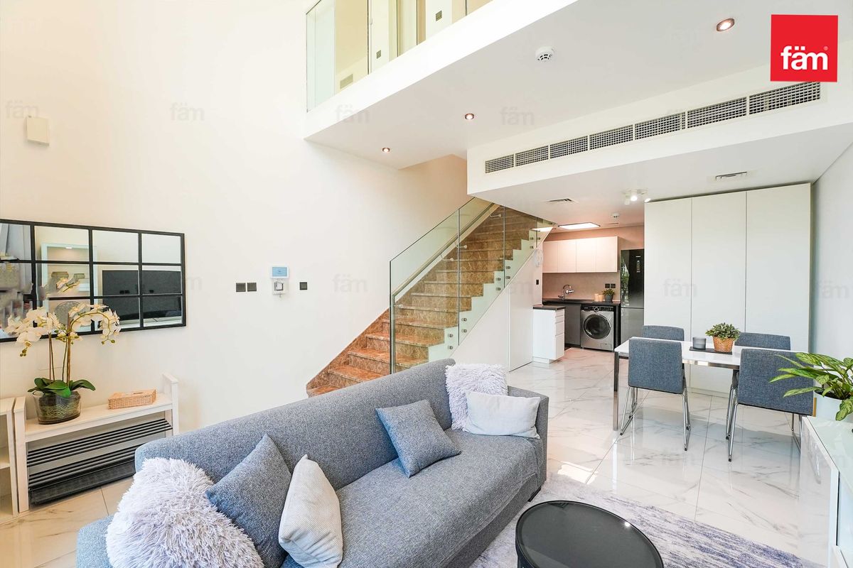 fäm Properties is delighted to offer this fully upgraded and fully furnished 1-bedroom, 2-bathroom loft-style townhouse for rent in the vibrant Rukan Community, Wadi Al Safa.